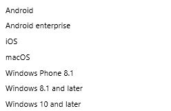 As with all devices that are going to store company data on, security is key. Intune uses Device Compliance policies to deploy security to its enrolled devices and supports the following platforms: